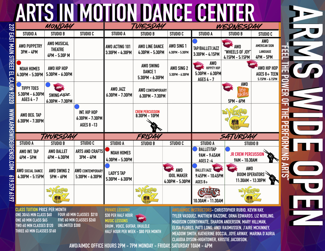 Arts In Motion Dance Center is located in the heart of East County at 237 East Main Street, El Cajon 92020.